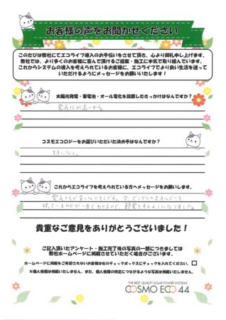 太陽光発電•蓄電池を設置したきっかはなんですか?