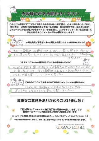 太陽光発電•蓄電池を設置したきっかはなんですか?