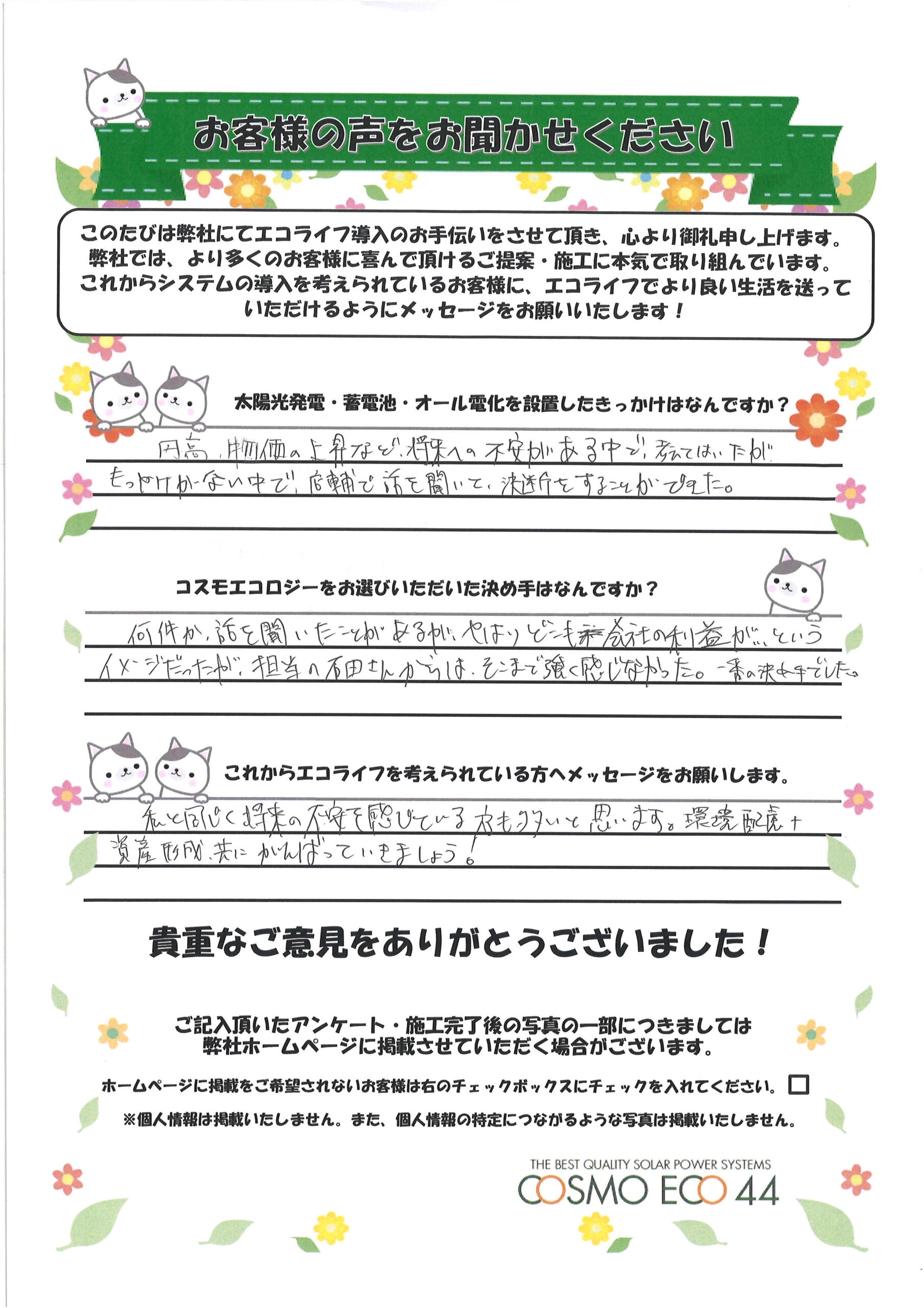 太陽光発電•蓄電池を設置したきっかはなんですか?