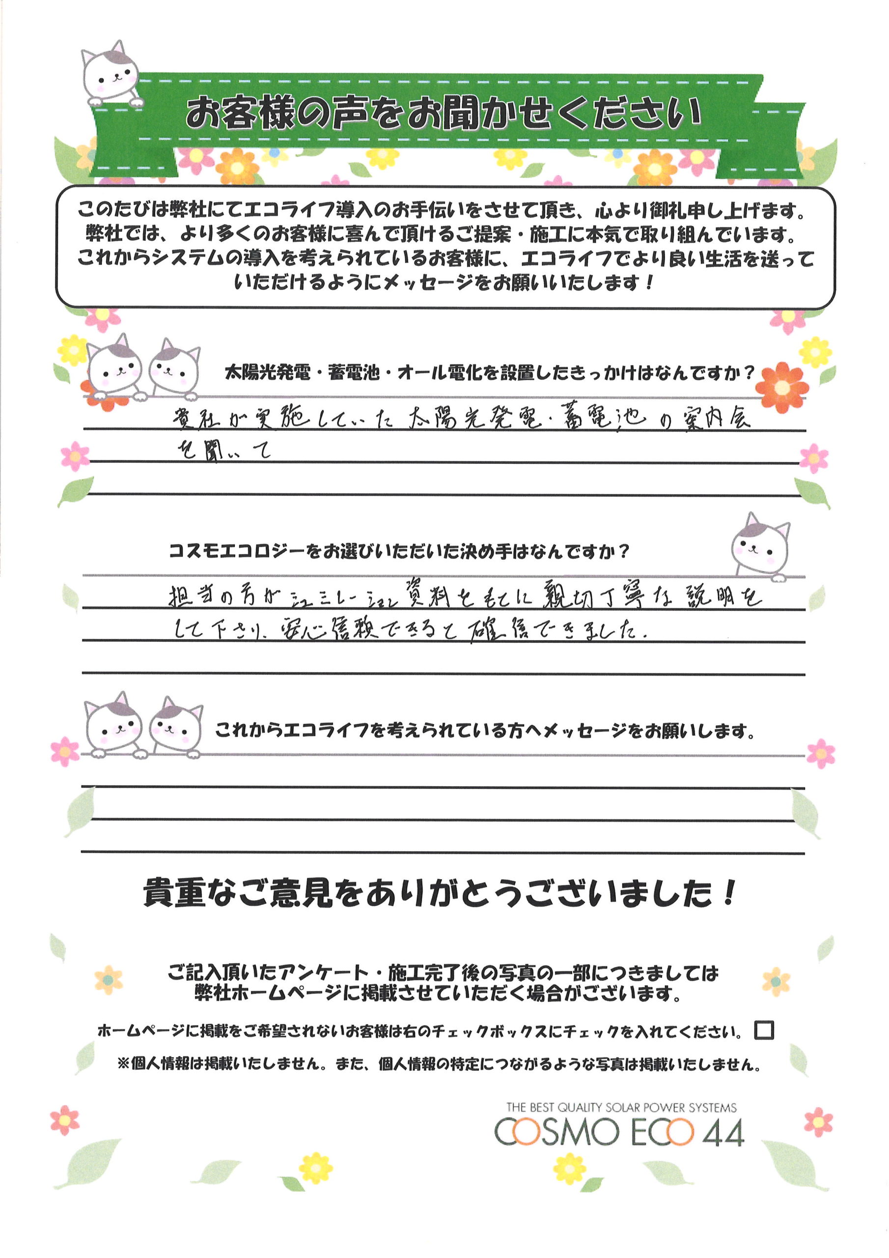 貴社が実施していた太陽光発電・蓄電池の案内会を聞いて。