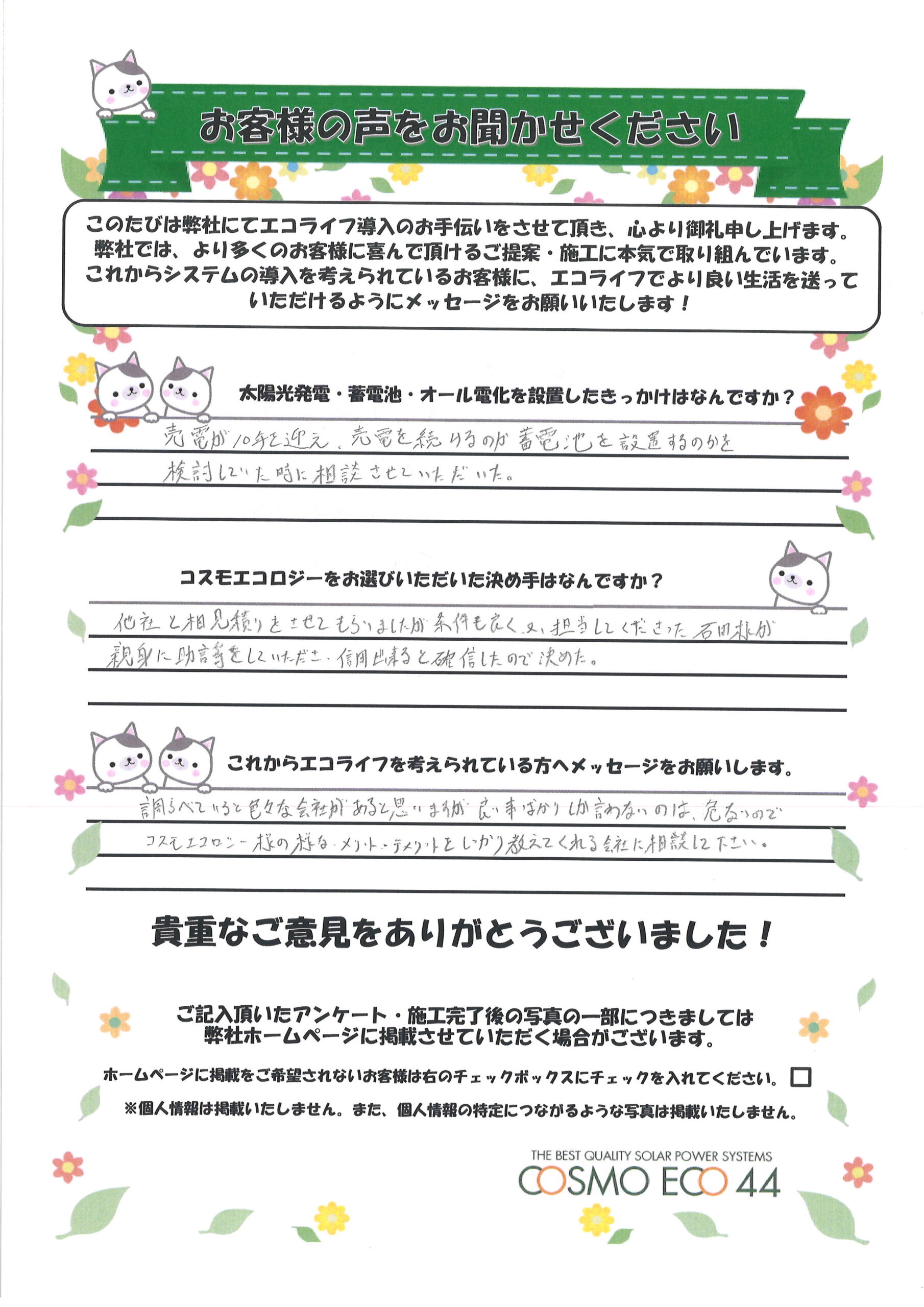 コスモエコロジーをお選びいただいた決め手はなんですか?