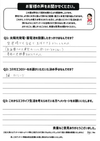 太陽光発電•蓄電池を設置したきっかはなんですか?