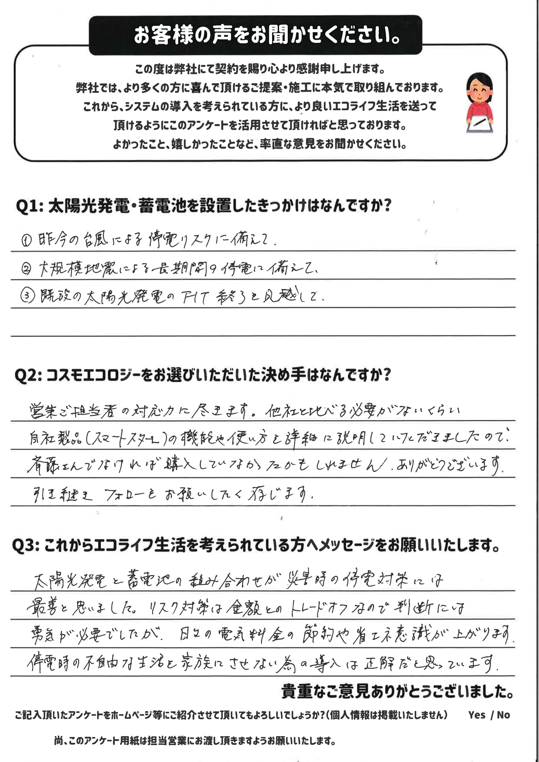 太陽光発電•蓄電池を設置したきっかはなんですか?