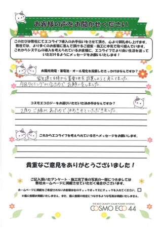 コスモエコロジーをお選びいただいた決め手はなんですか?