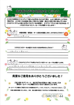 コスモエコロジーをお選びいただいた決め手はなんですか?