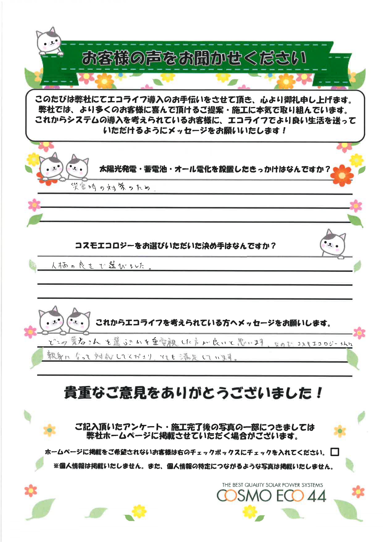 太陽光発電•蓄電池を設置したきっかはなんですか?