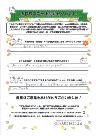 太陽光発電•蓄電池を設置したきっかはなんですか?
