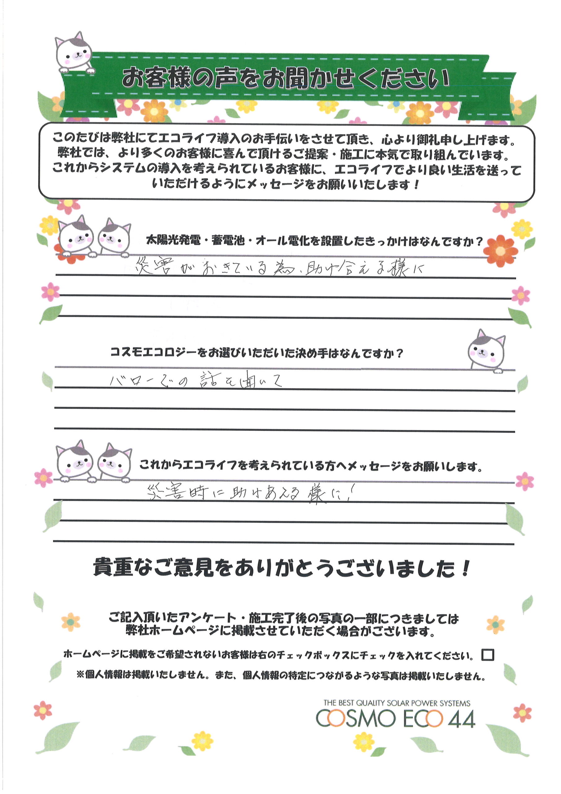 太陽光発電•蓄電池を設置したきっかはなんですか?