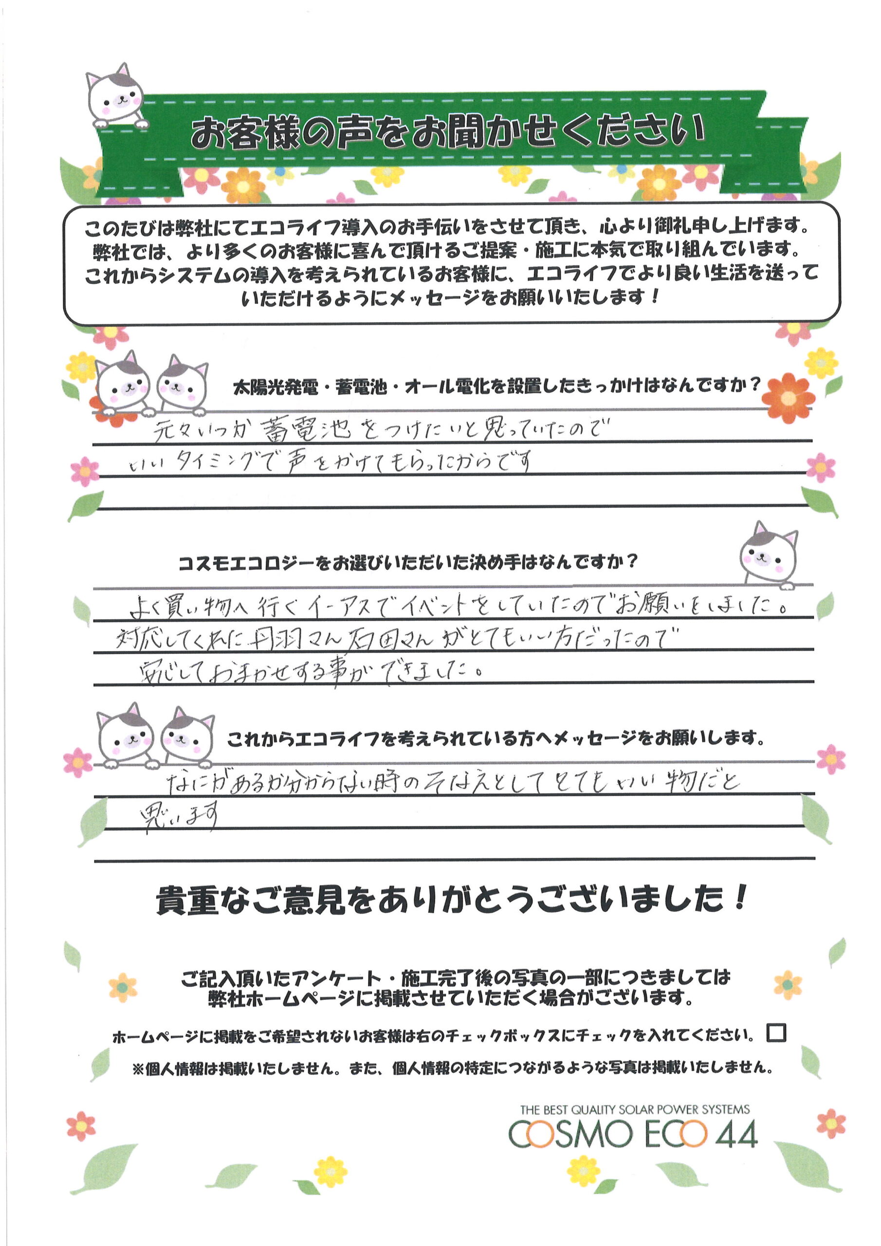 太陽光発電•蓄電池を設置したきっかはなんですか?