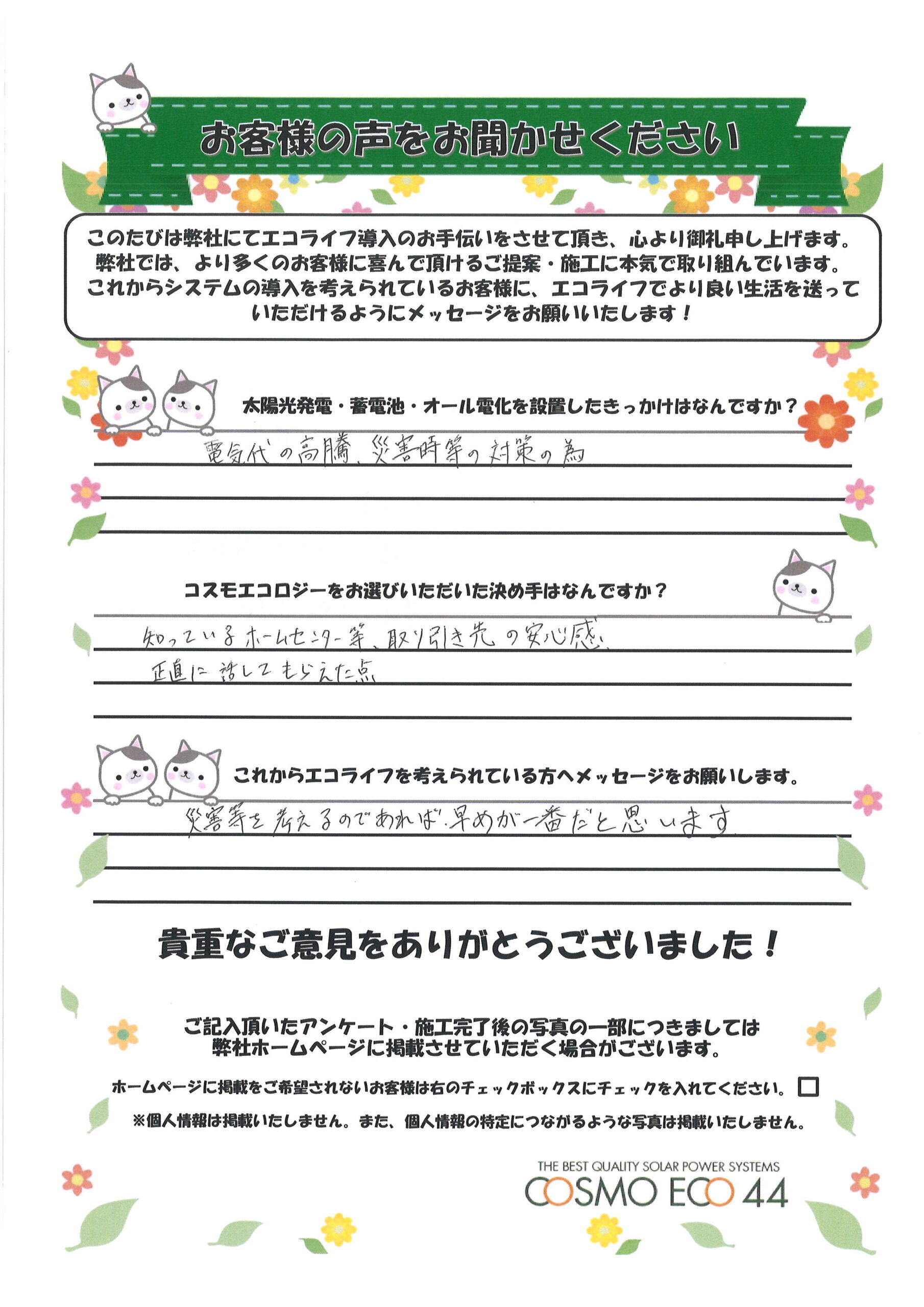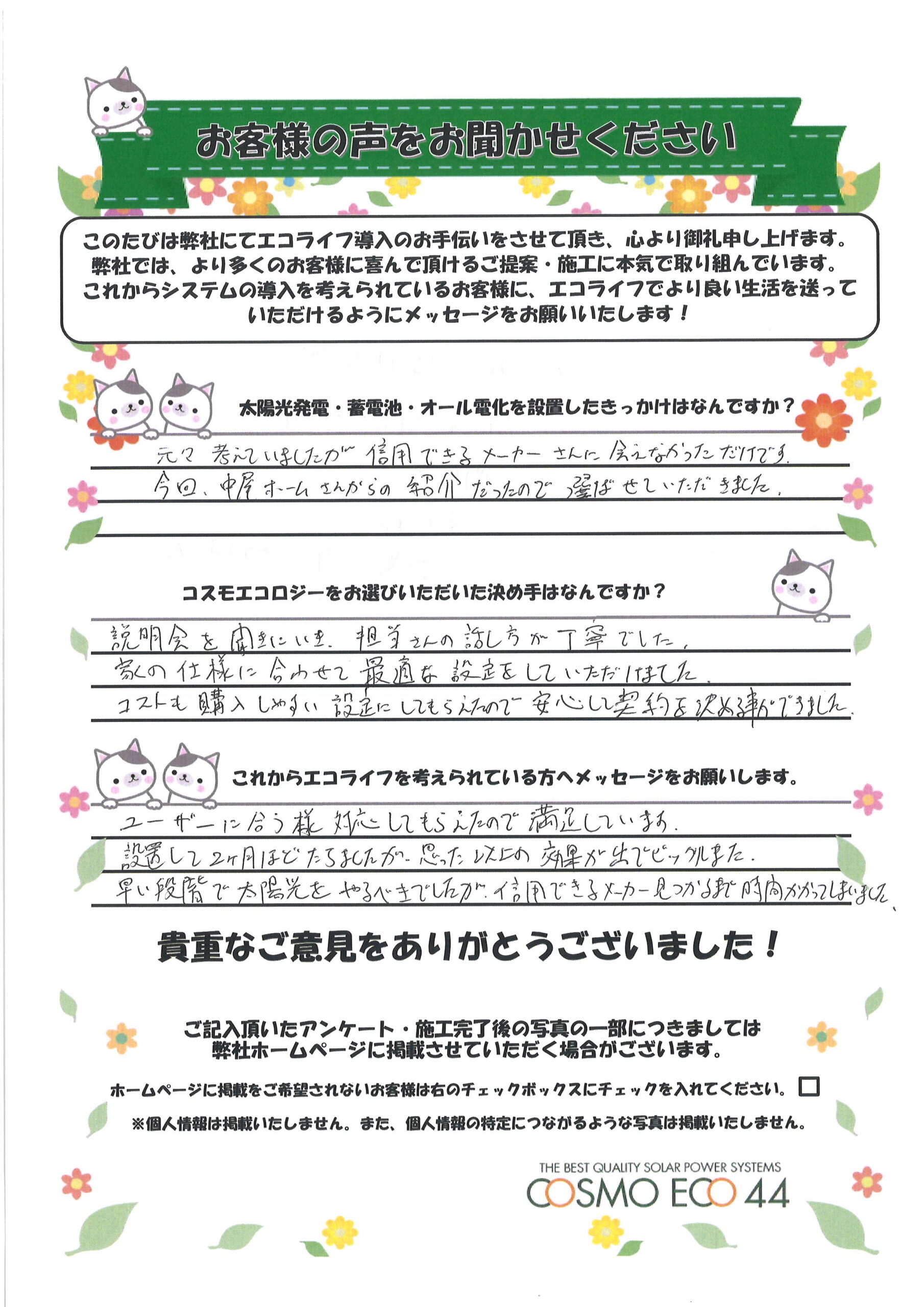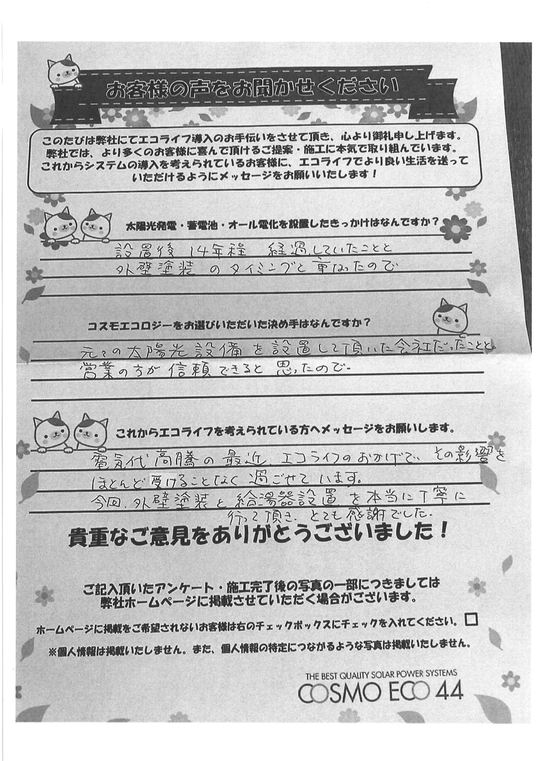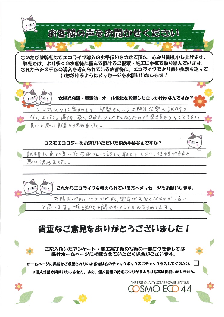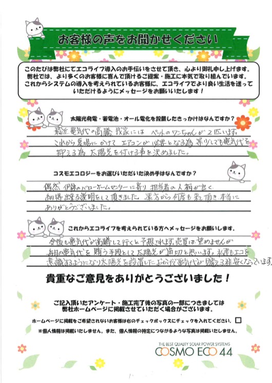 エコライフ導入のお手伝いをさせていただいた【お客様の声】を一部ご紹介させていただきます。