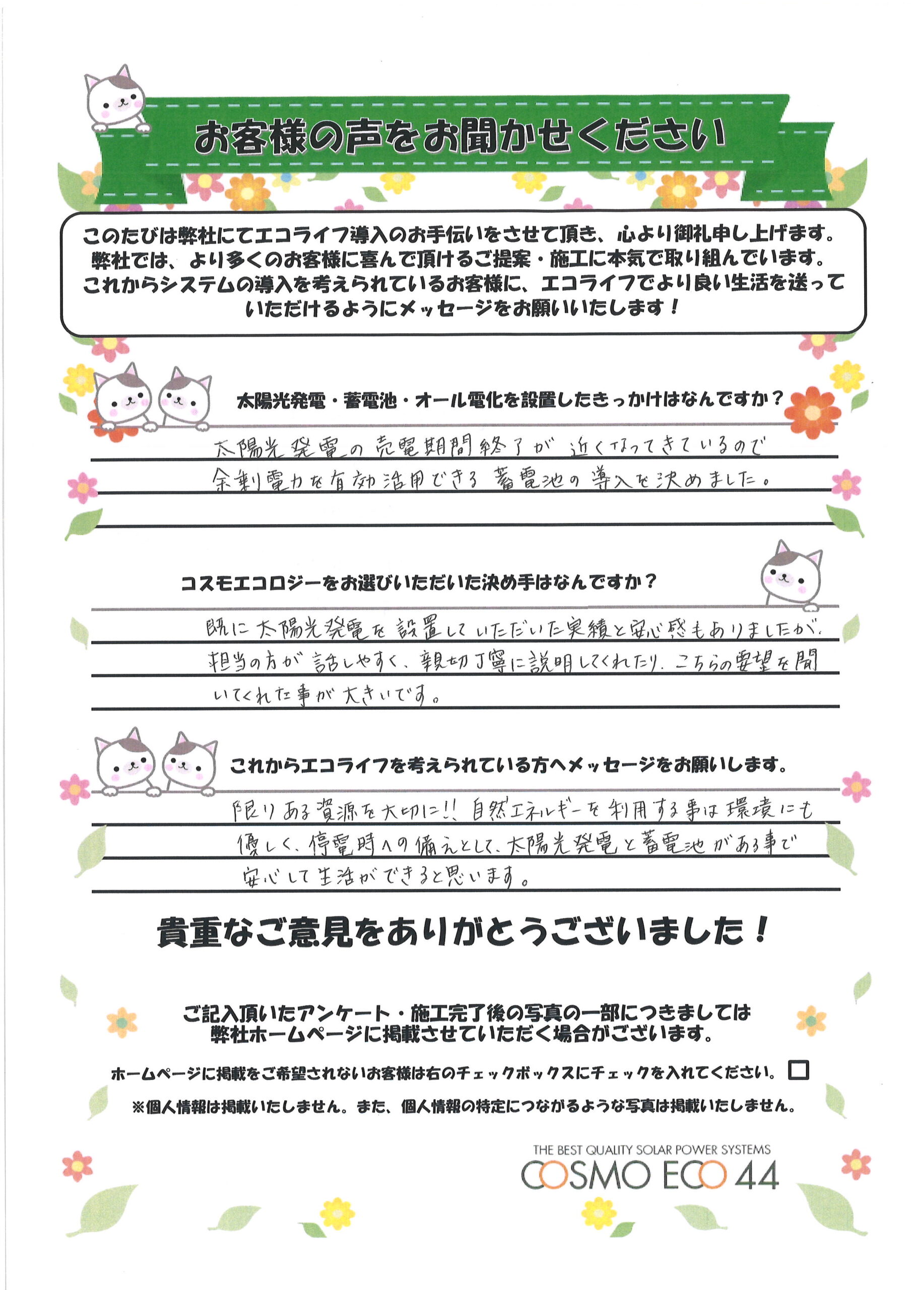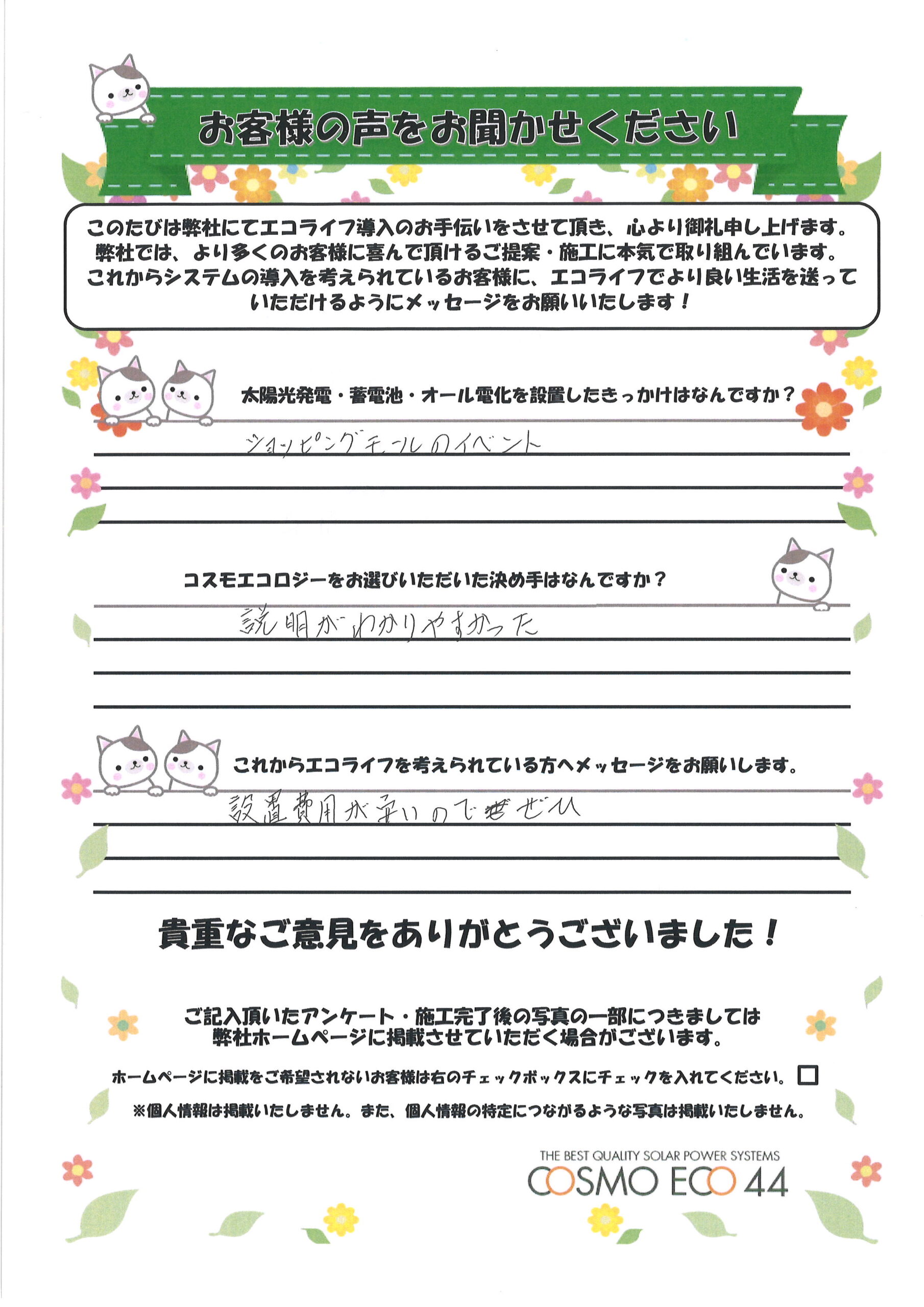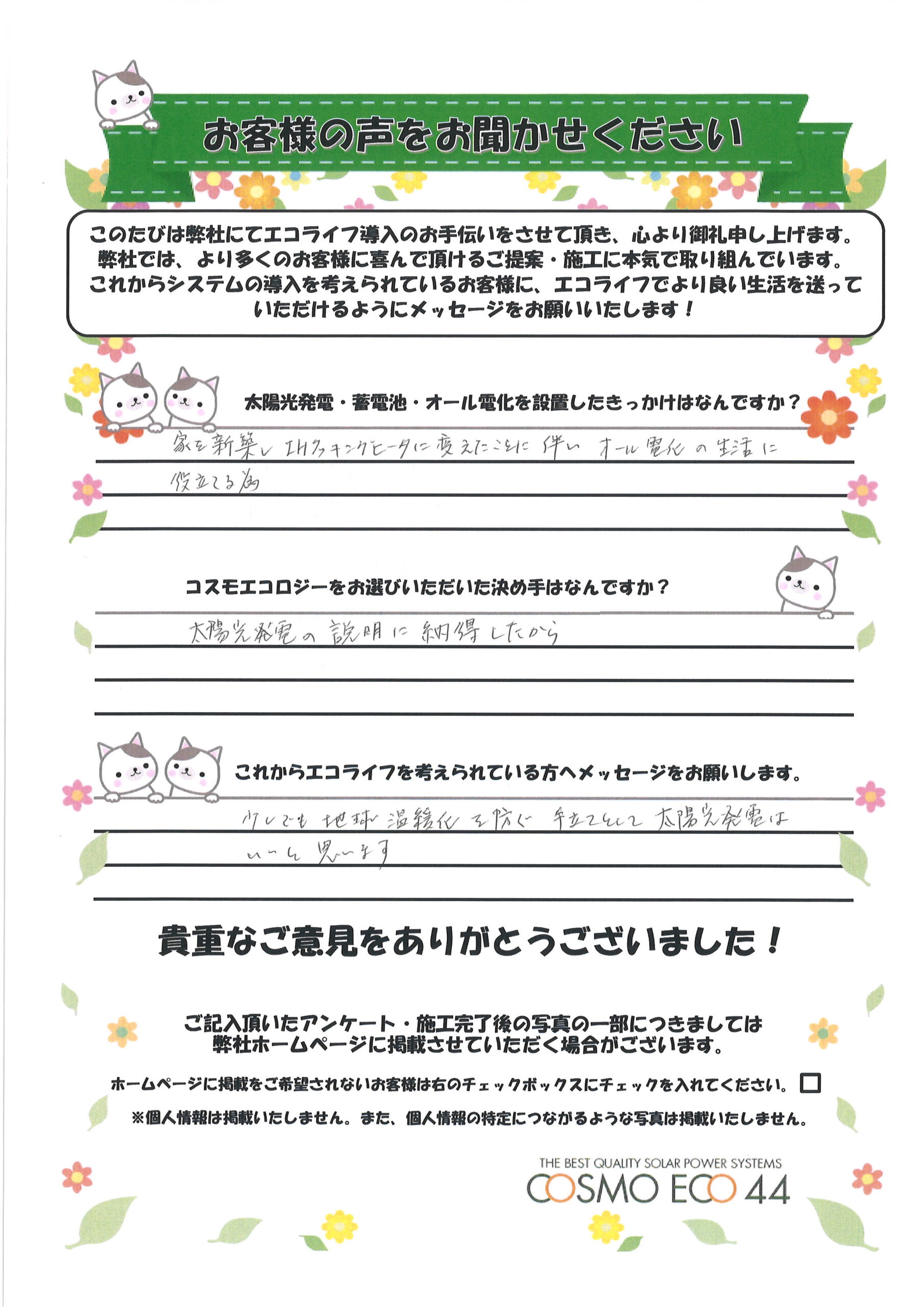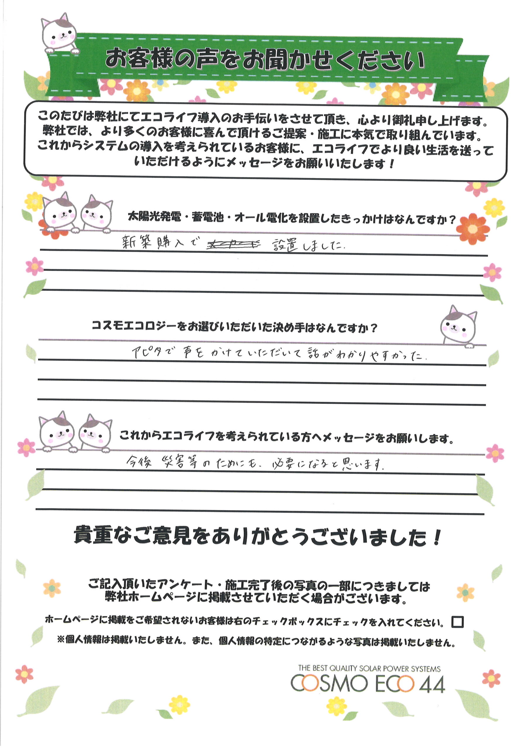 エコライフ導入のお手伝いをさせていただいた【お客様の声】を一部ご紹介させていただきます。