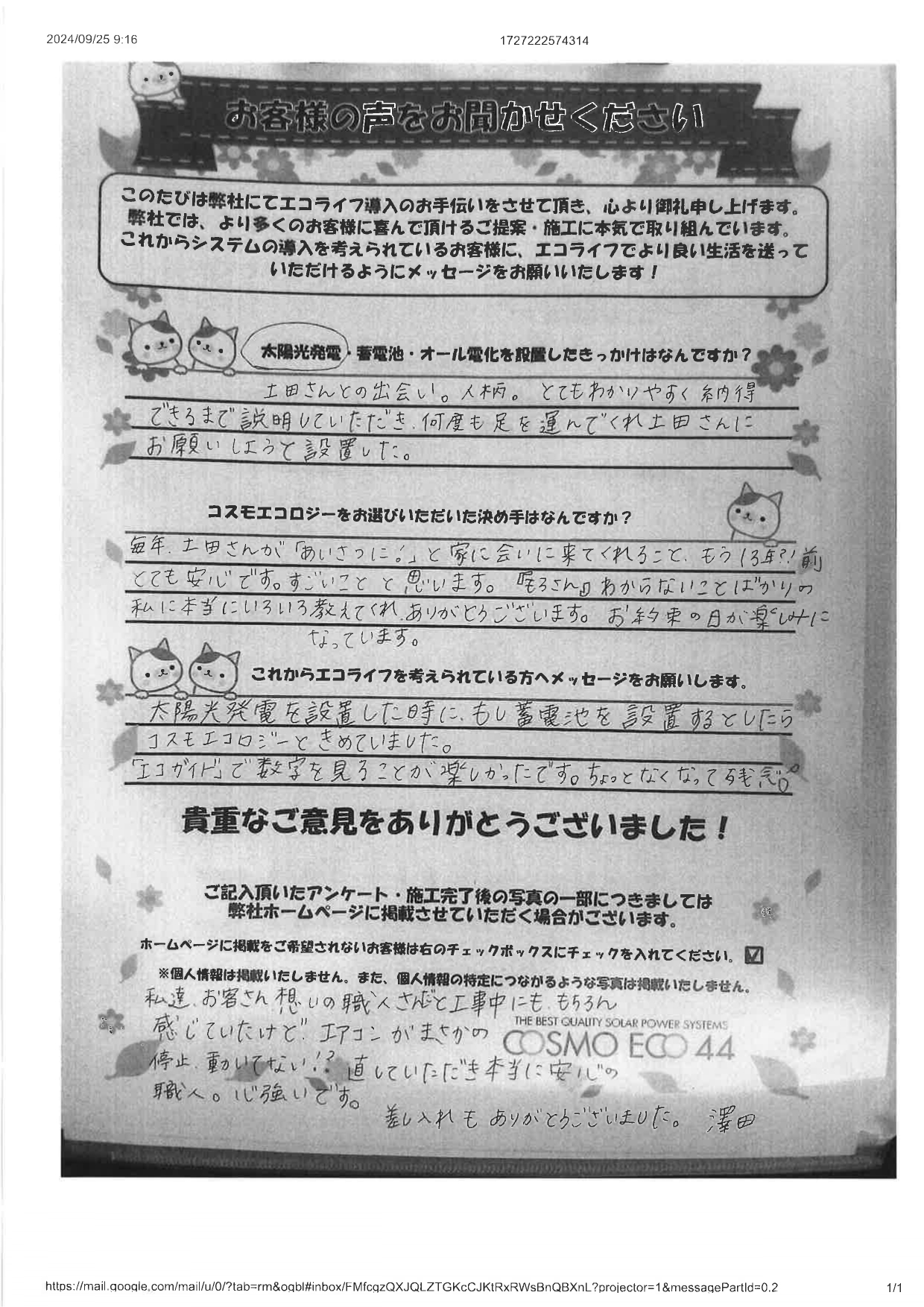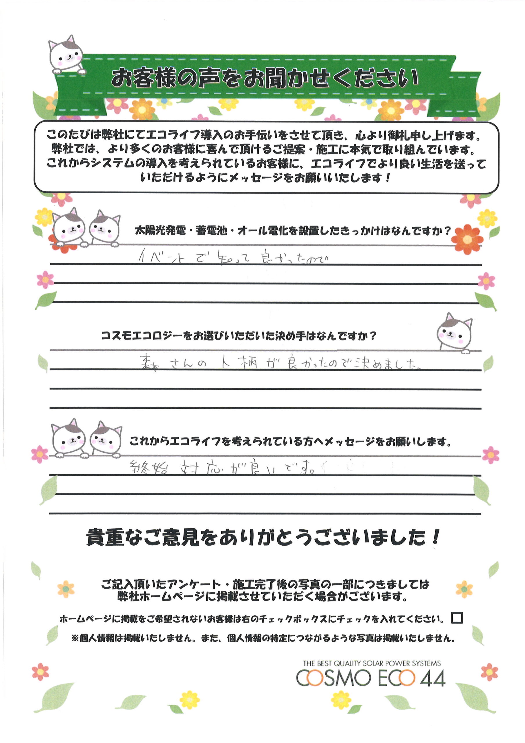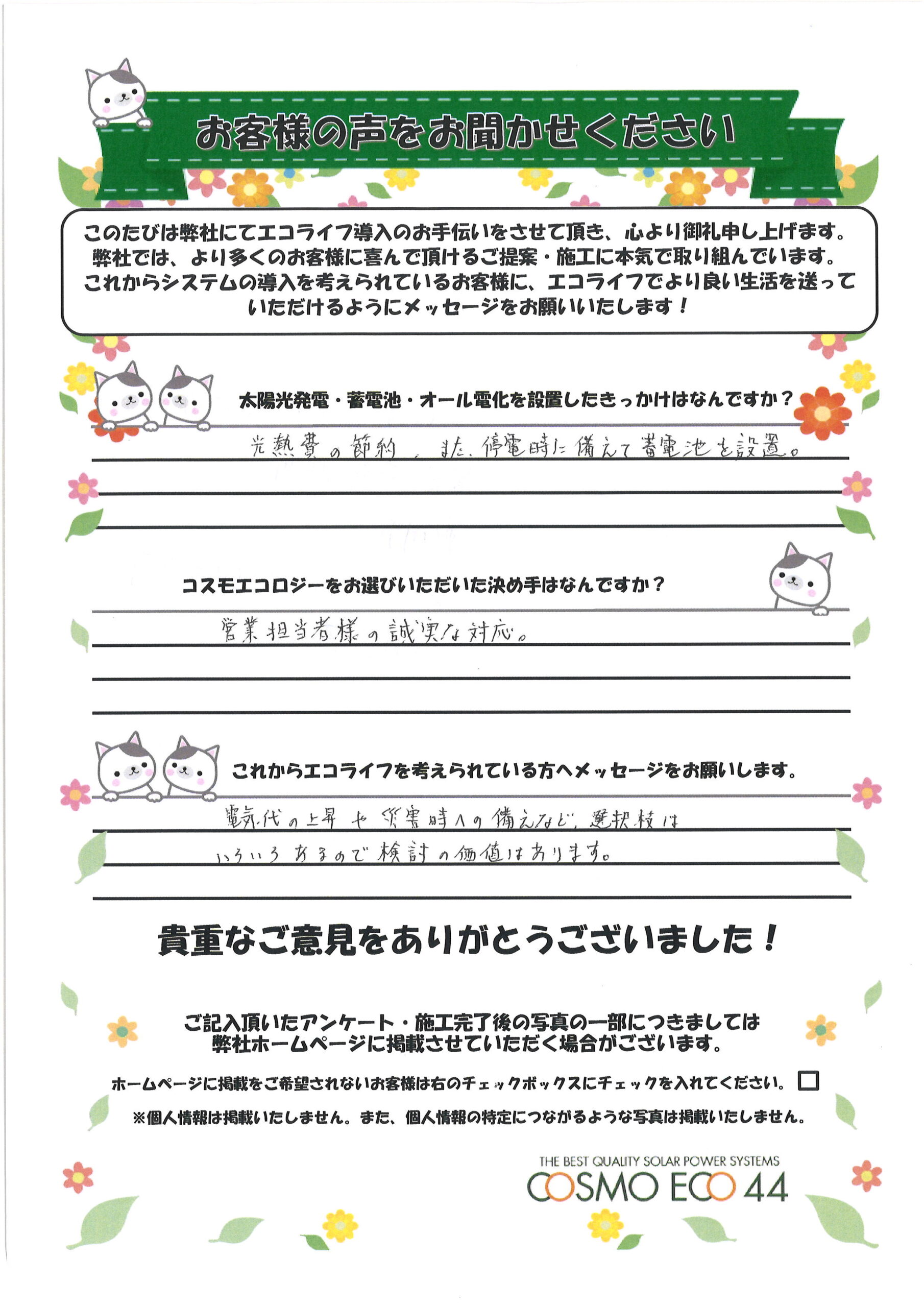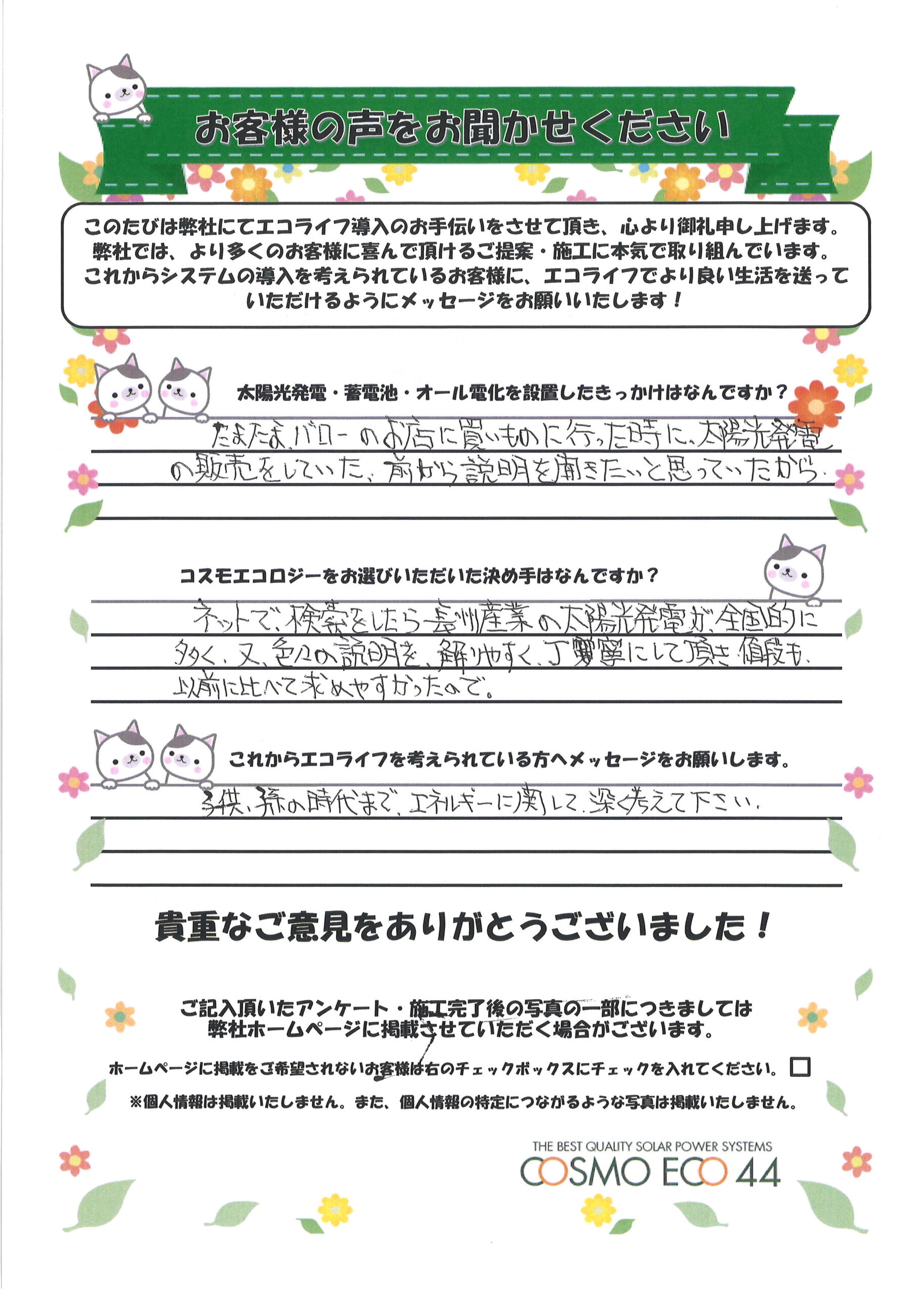 エコライフ導入のお手伝いをさせていただいた【お客様の声】を一部ご紹介させていただきます。