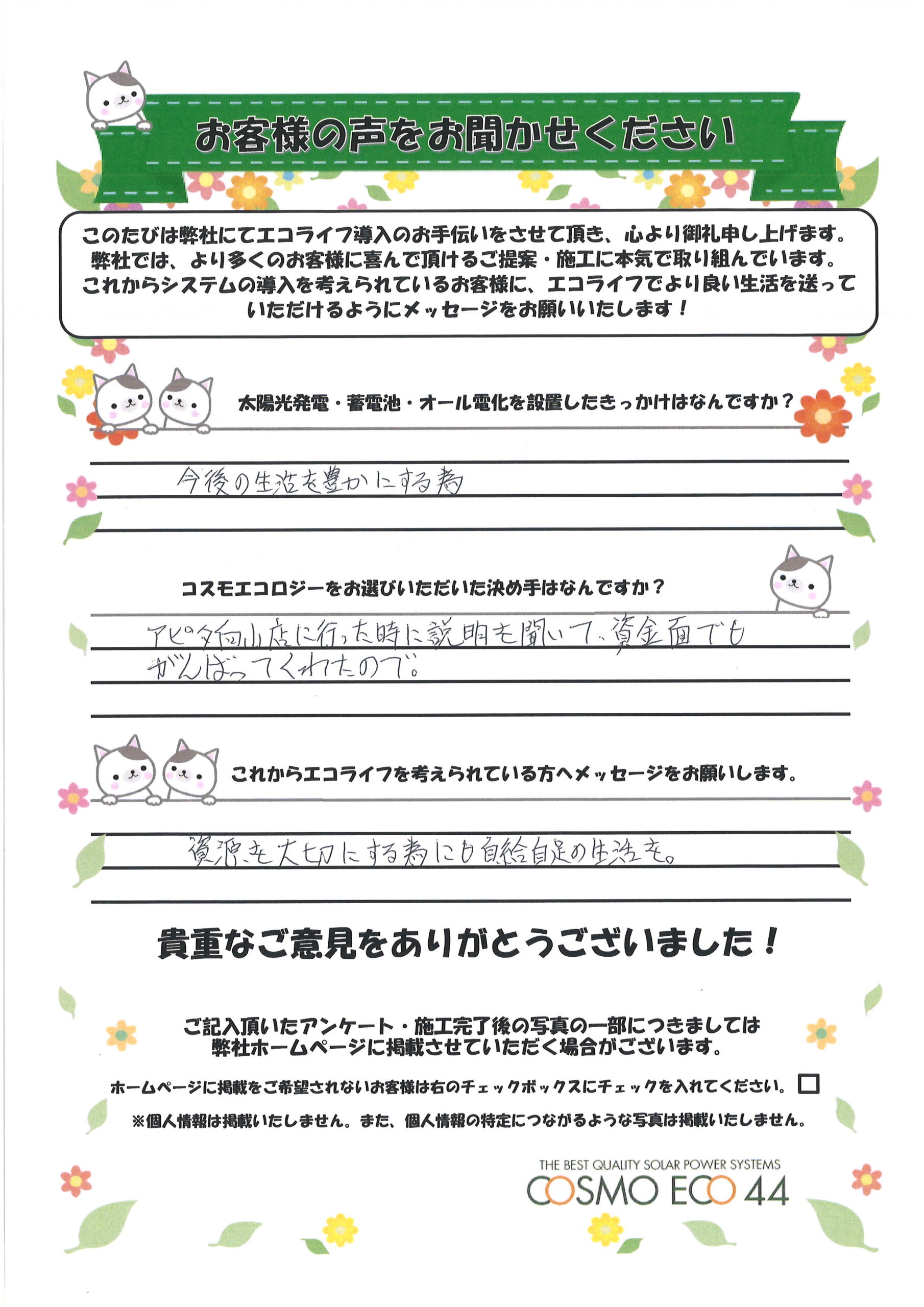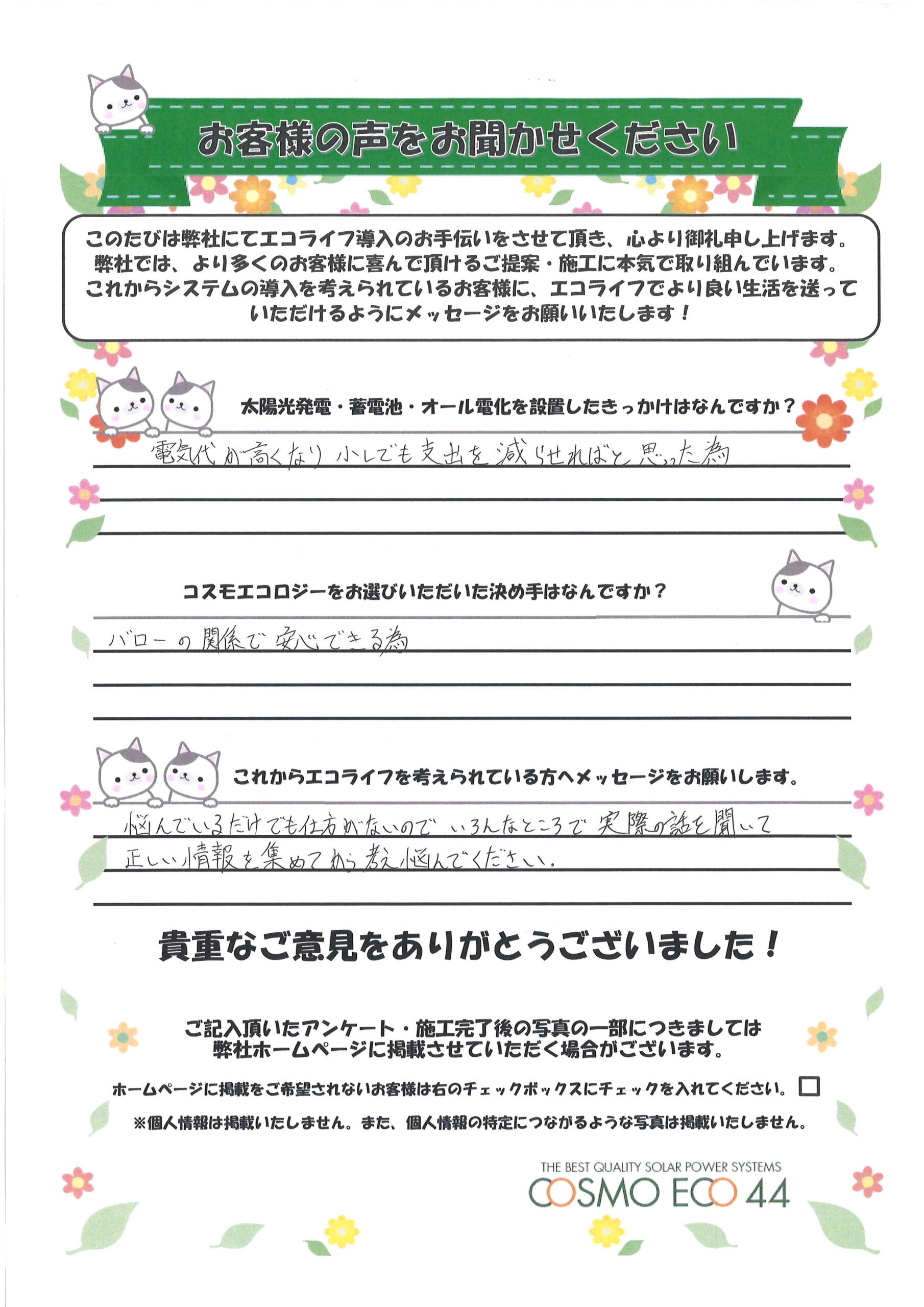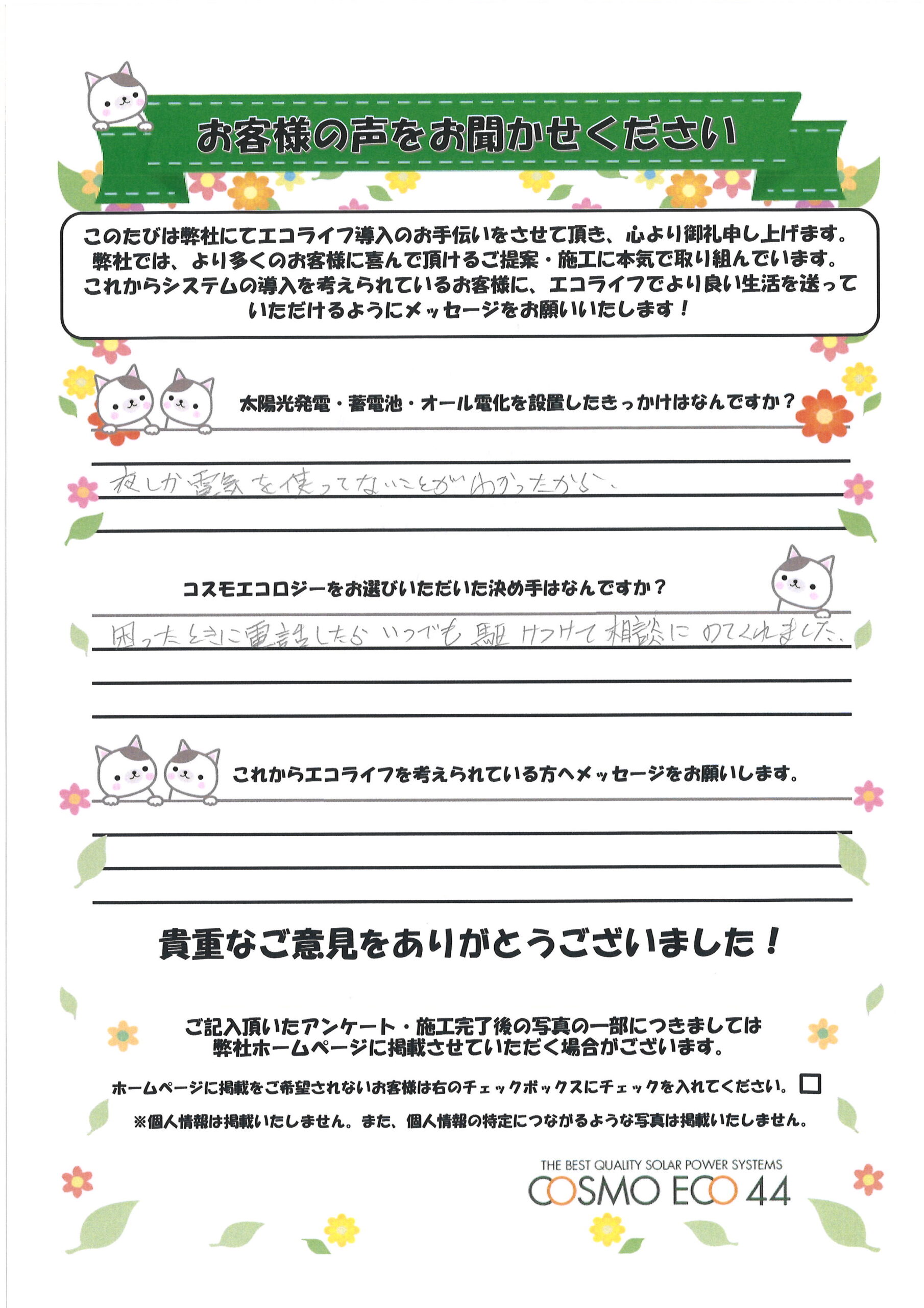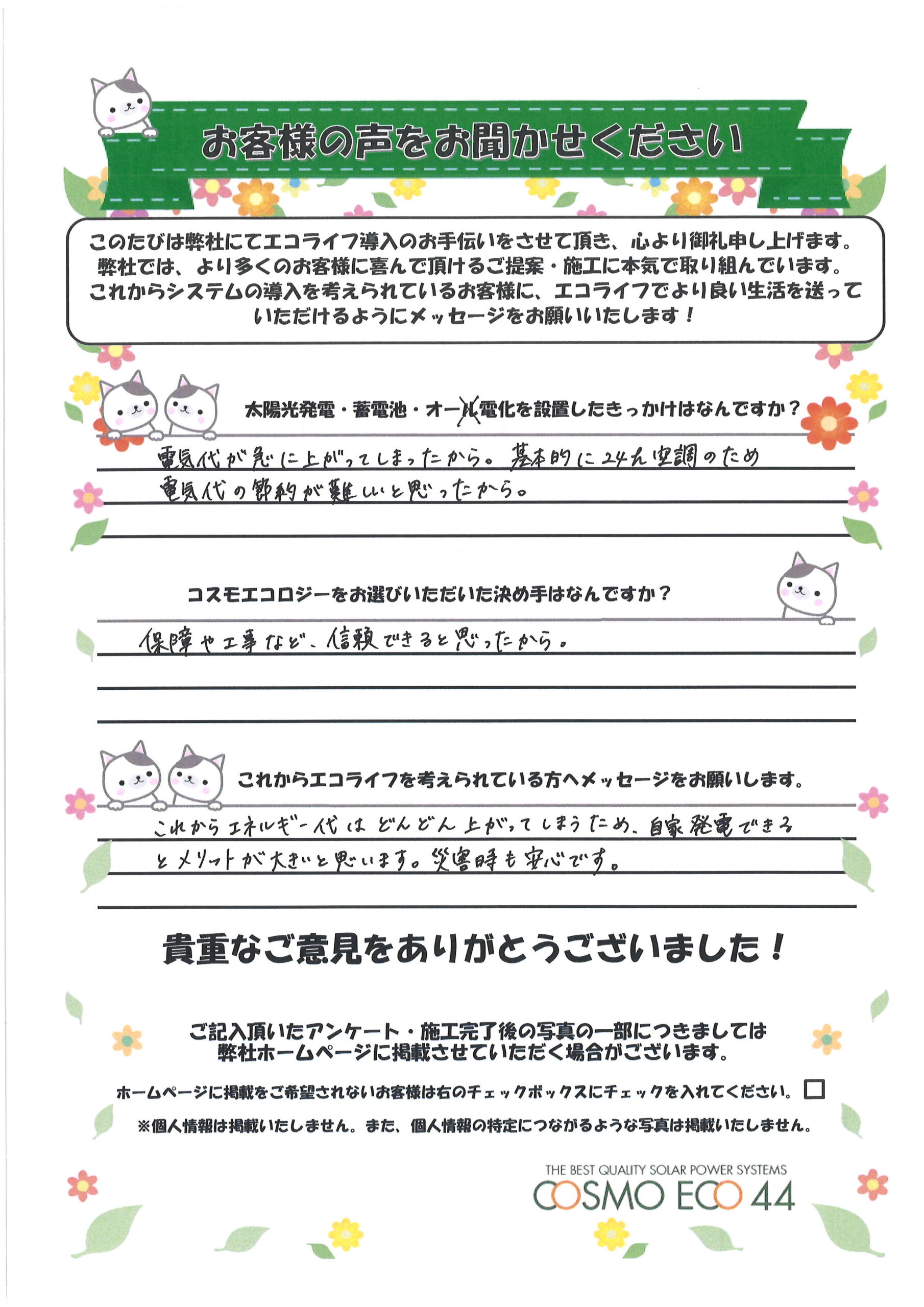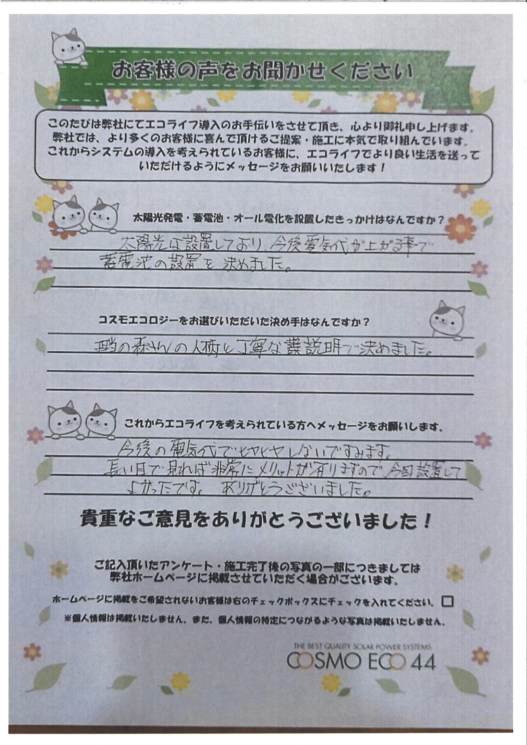 エコライフ導入のお手伝いをさせていただいた【お客様の声】を一部ご紹介させていただきます。