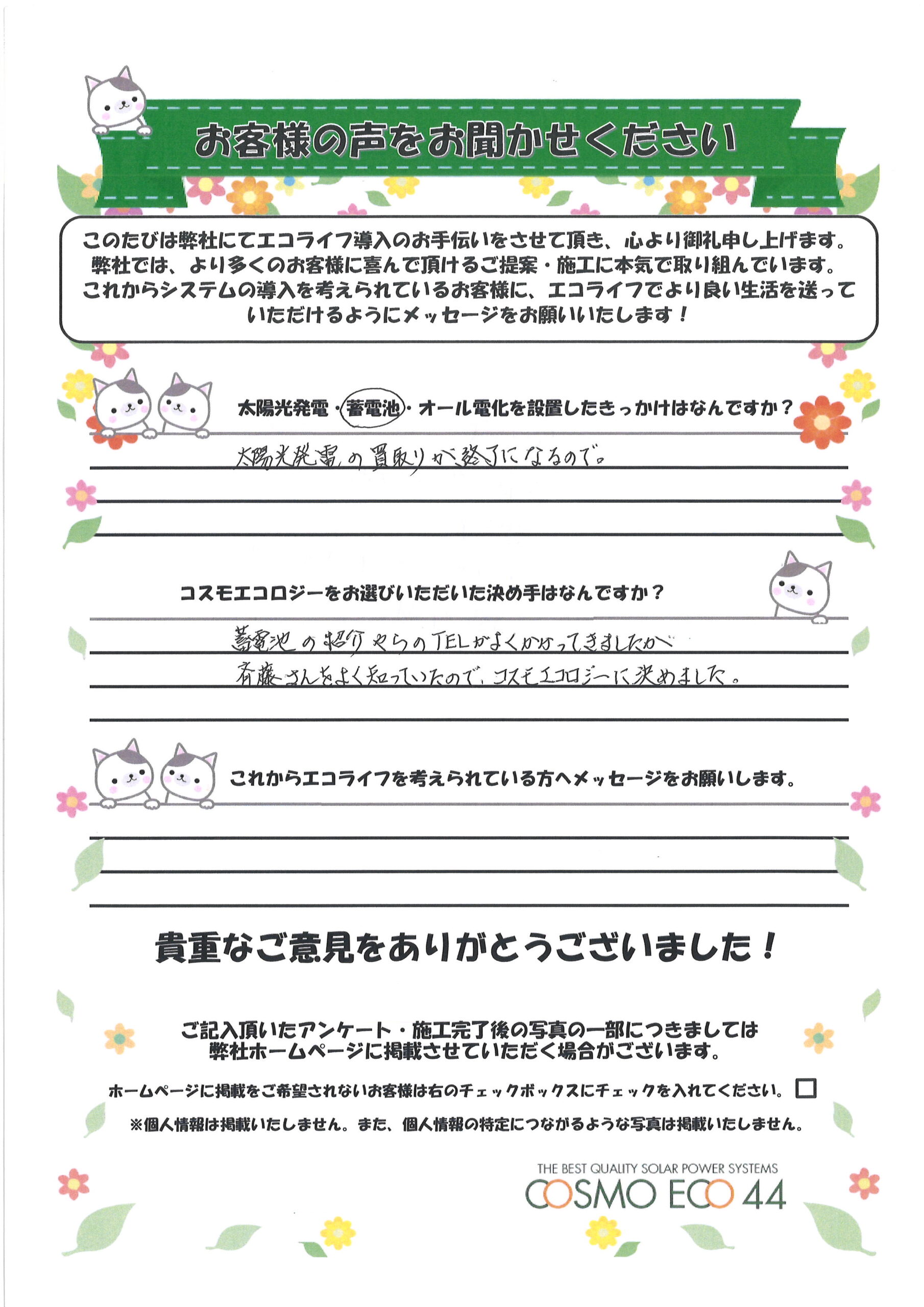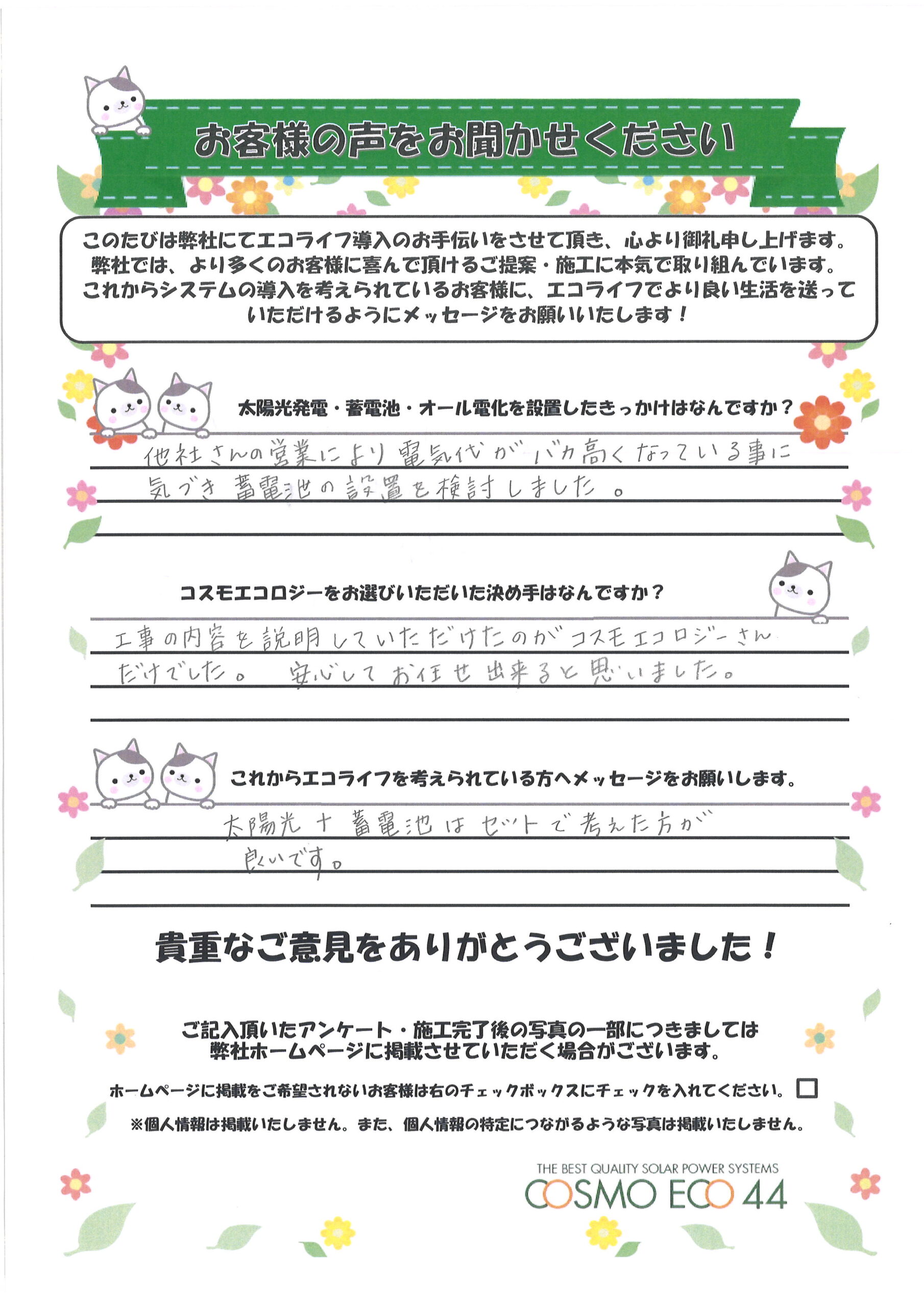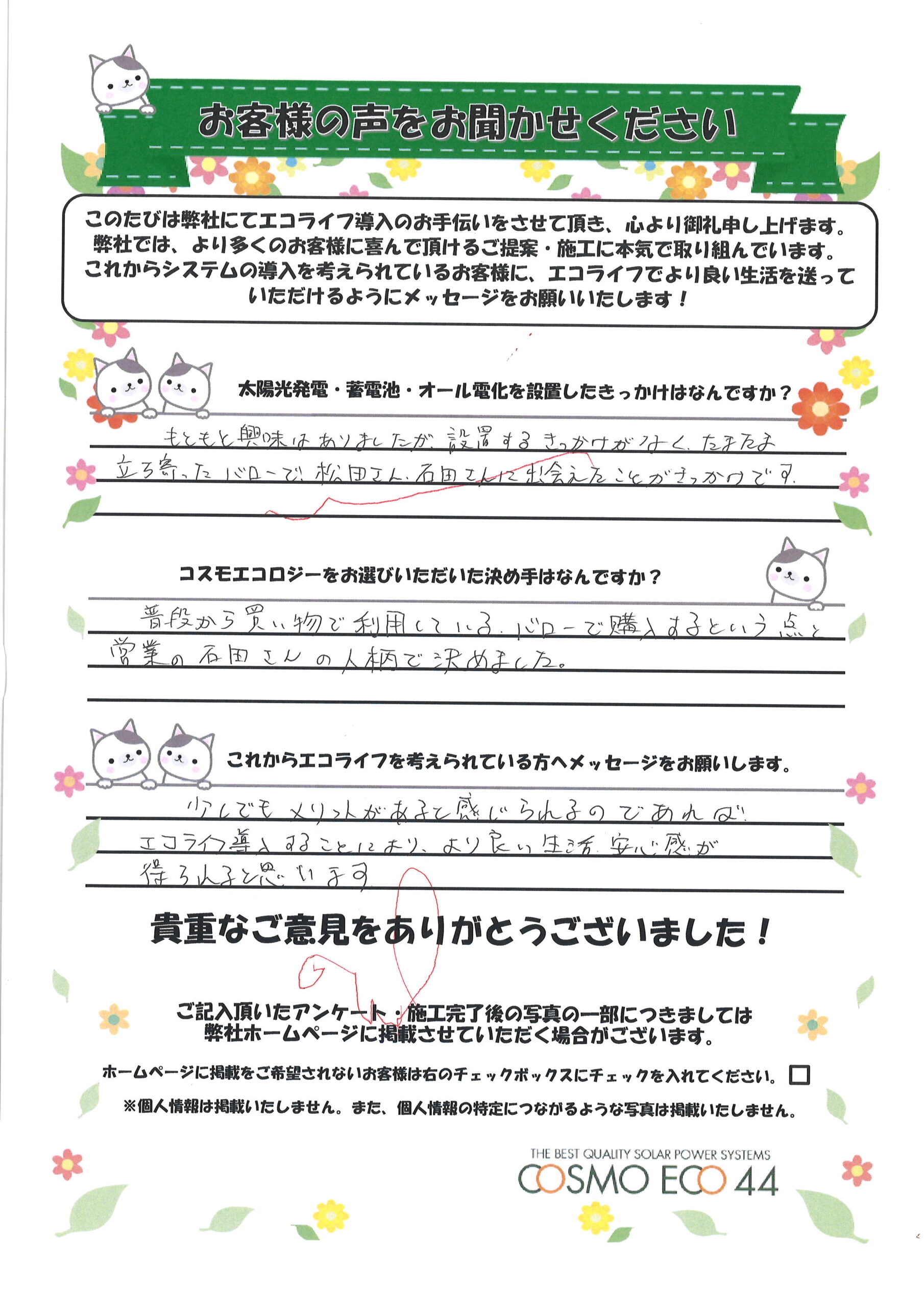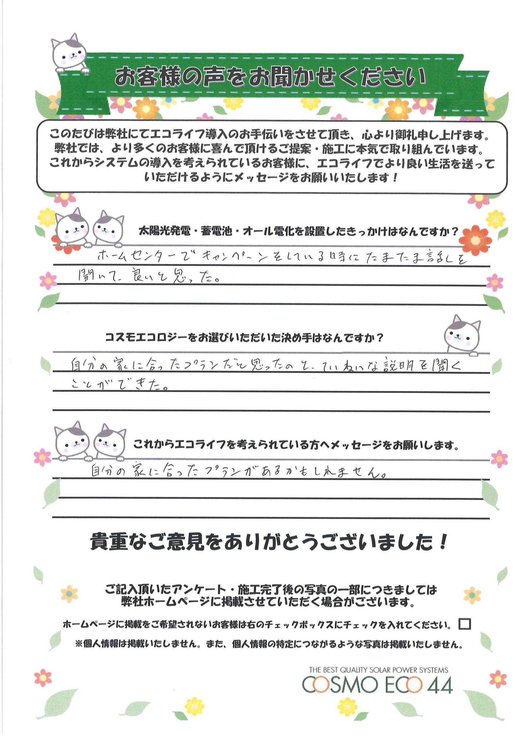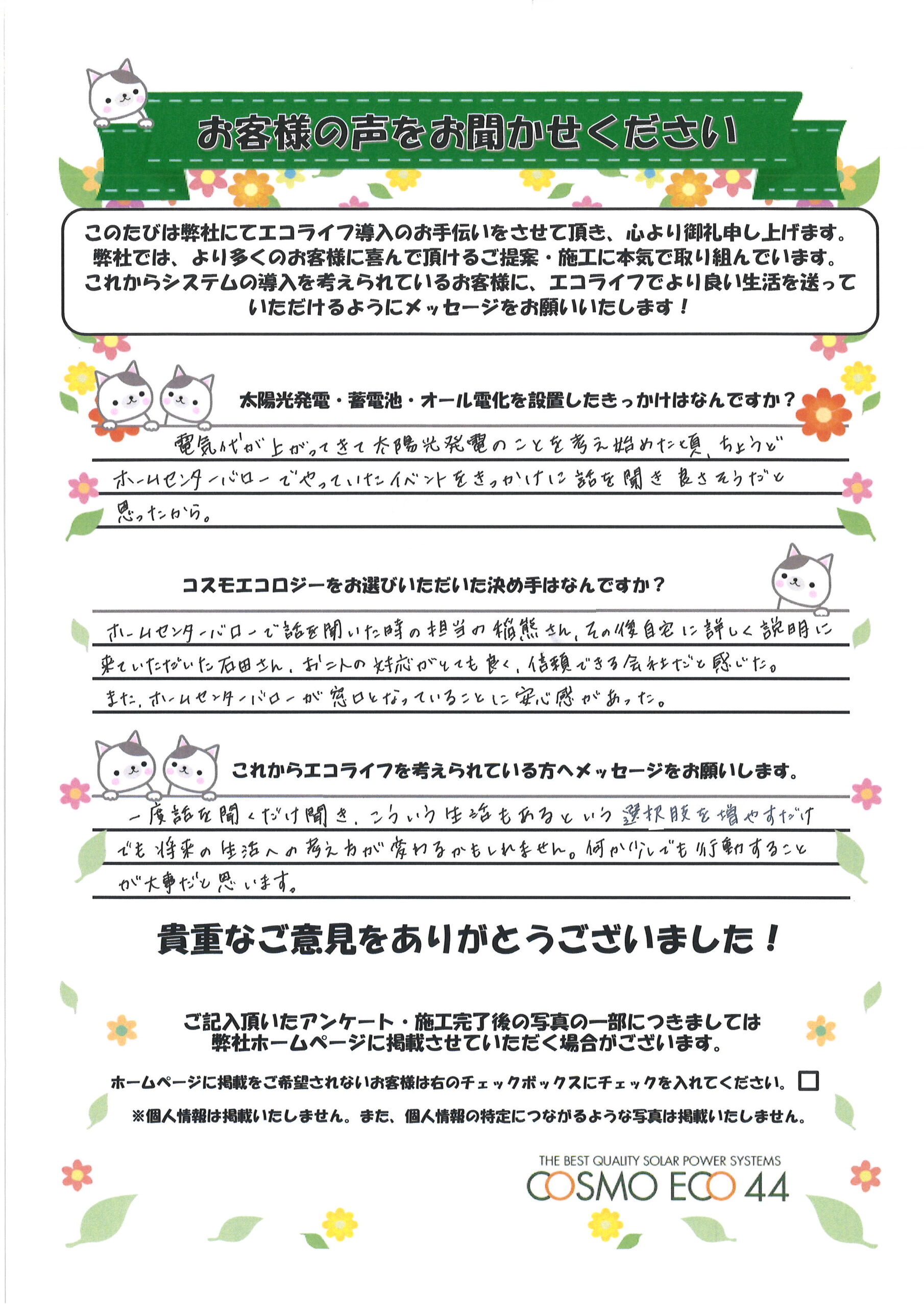 エコライフ導入のお手伝いをさせていただいた【お客様の声】を一部ご紹介させていただきます。